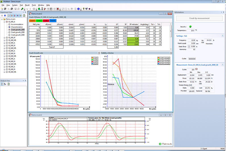 Sur la base de cette large expérience, Metravib a développé au sein de la gamme DMA+ un module de test de suivi de propagation de fissure afin d’apporter à l’industrie du caoutchouc ainsi qu’à la Recherche, un instrument de test avancé à la fois quantitatif et productif.