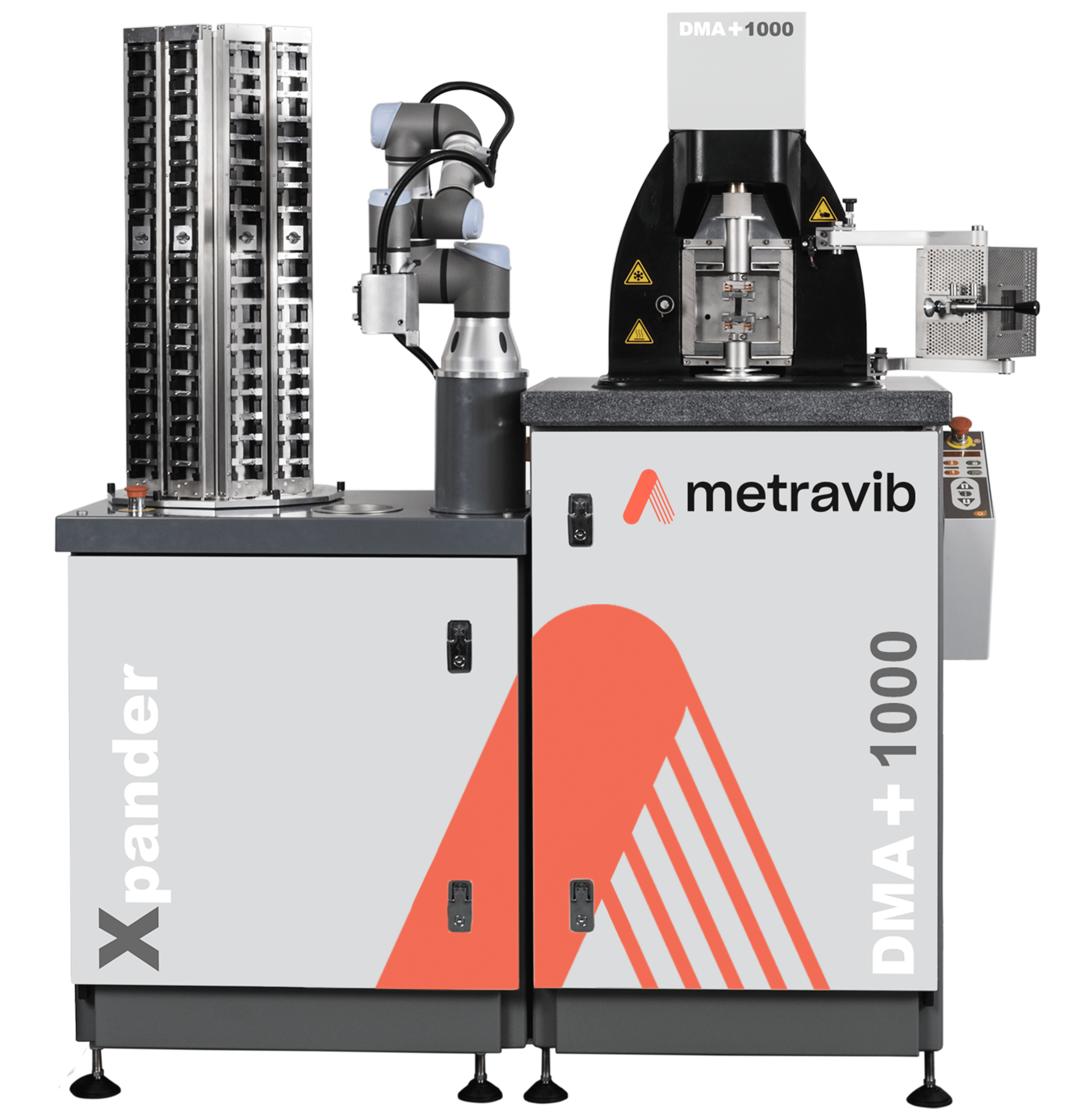 Metravib Xpander is a unique cost-effective solution to address the increasing throughput requirement of testing laboratories. Xpander is an automated specimen handling system dedicated to the DMA+ series Dynamic Mechanical Analyzers. Xpander allows DMA test campaigns to run continuously around the clock and autonomously without any operator intervention. Xpander’s flexibility makes possible to accommodate with material specimens of various shapes and sizes. As a pioneer in the automation of dynamic testing, Metravib has been supplying the leaders of the rubber and tire industries with robust automated DMA for more than 20 years.